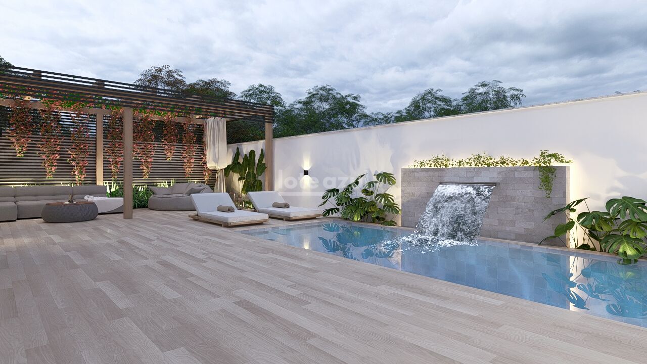- Espaço gourmet com vista frontal para a piscina